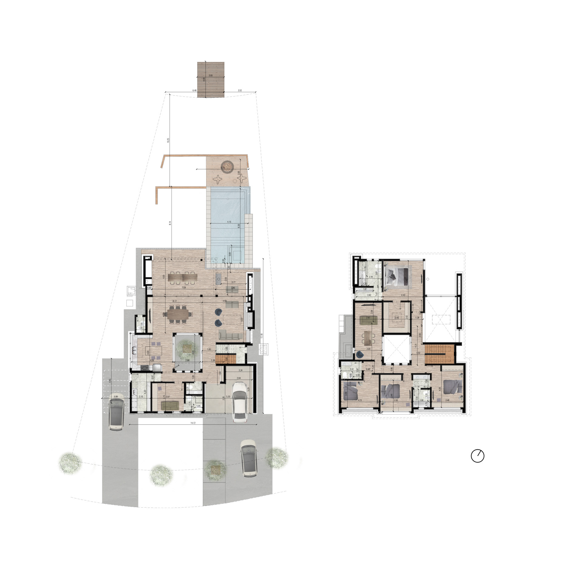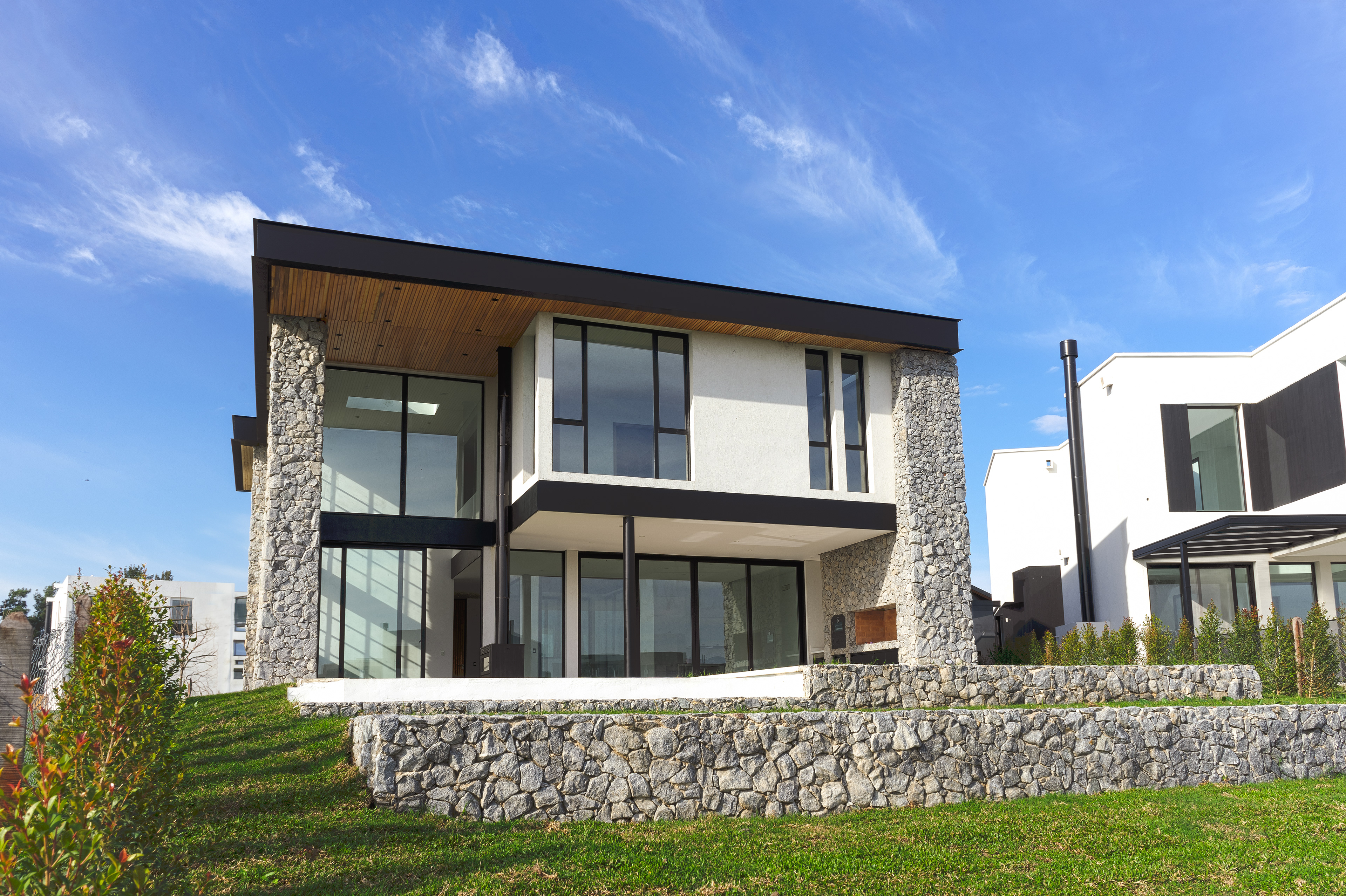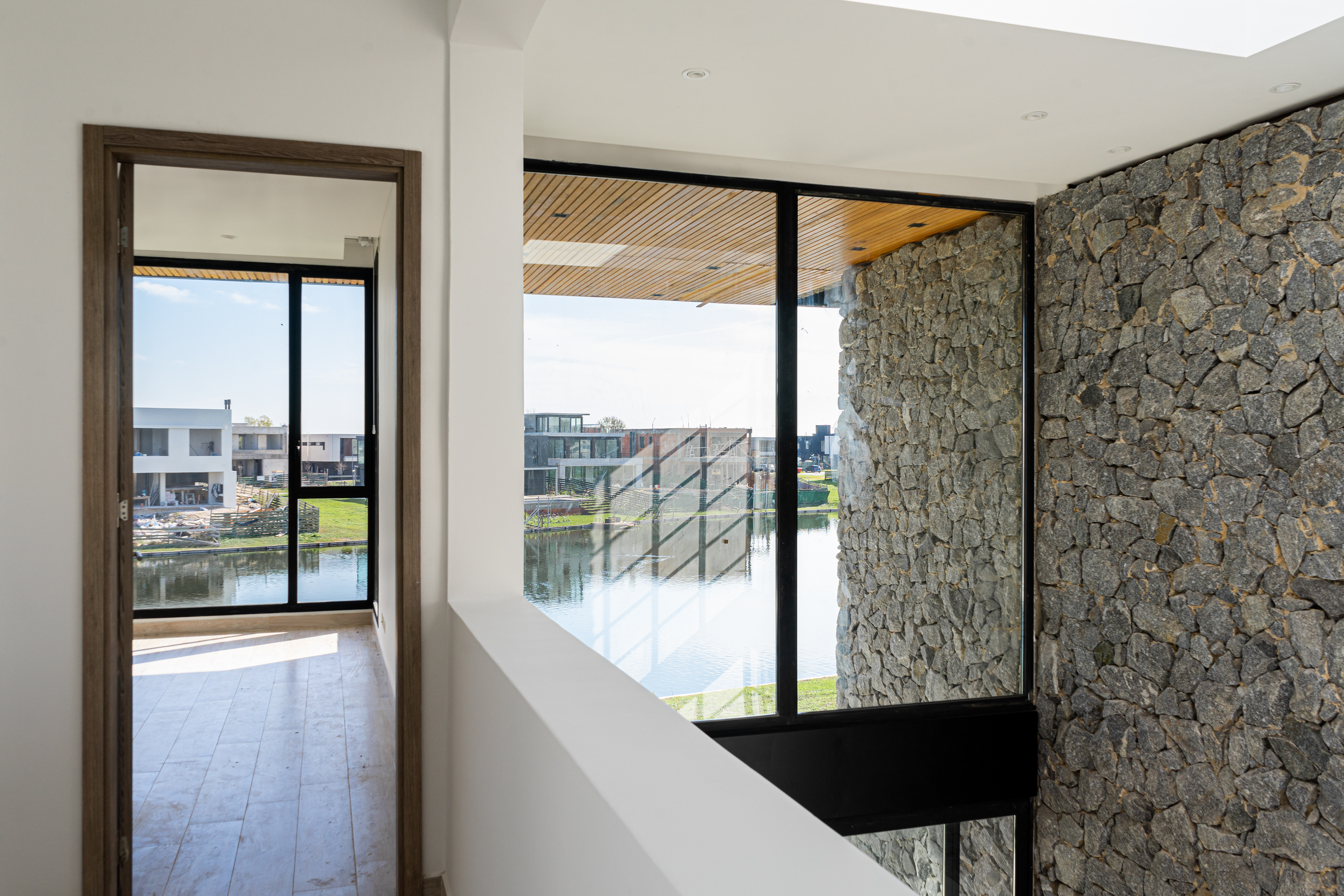 En un terreno hacia la laguna del barrio, la casa se organizó en torno a un patio interno central. A su alrededor se encuentra el programa principal de la casa: estares, cocina, cuartos. De esta forma, se les ofrece iluminación, ventilación, visuales verdes y privacidad, requisitos del cliente.